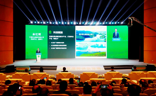 余红辉指出,中林集团作为我国林业行业唯一央企,过去一年来,认真贯彻落实习近平生态文明思想,坚持系统思维,秉持山水林田湖草沙是生命共同体的理念,以经营大规模森林资源为基础,加速构建现代林业产业体系,先后与江西、贵州、福建、湖南、广西等全国15个省(市)规划建设国家储备林1.93亿亩,签约面积超1亿亩,可预见经营林地面积超2亿亩,汇聚起绿色低碳实践的强大合力。坚持科技创新,聚焦国家“双碳”战略的迫切需求,深度挖掘林业负碳技术应用,不断拓宽林业高质量发展新领域、新赛道,目前已经开发出竹缠绕复合管、竹缠绕管廊、竹缠绕整体组合式房屋、竹缠绕高铁车厢等低碳产品,中林的木结构基地正在加快建设,菌草种植产业已制作出中国第一批“菌草人造板”。坚持以提高5亿林农收入为出发点和落脚点,本着“为国储材、助农致富”的原则,持续探索“乡村振兴+绿色发展”新路径,通过把低息、长期的政策性资金导入全国集中连片特困区,大规模承接国家储备林建设任务,实现了让林农增收致富的目标,推动了生态产品价值高效转化。