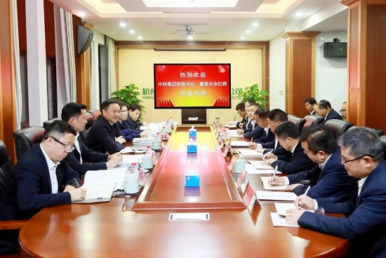 11月20日,中林集团党委书记、董事长余红辉在芜湖与芜湖市委书记单向前进行会谈。双方围绕进一步深化央地合作,共同探索“两山”高质量转化有效路径,助力国家“双碳”目标实现进行了深入交流,并达成广泛共识。