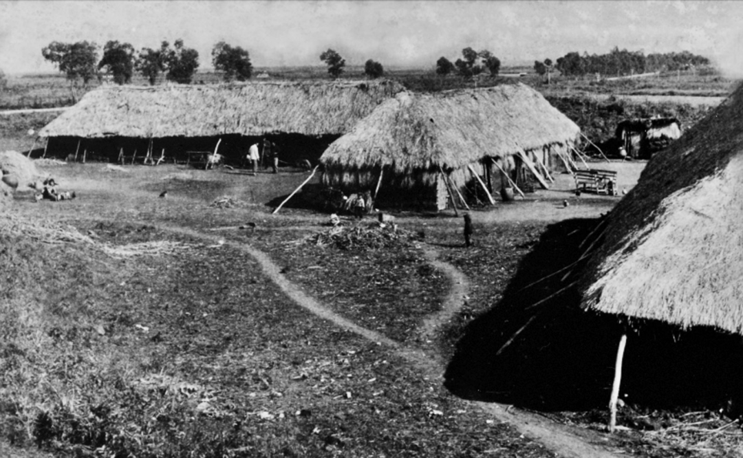 老一辈雷林人搭建茅棚,扎营荒山野岭植树造林。(1955年摄)