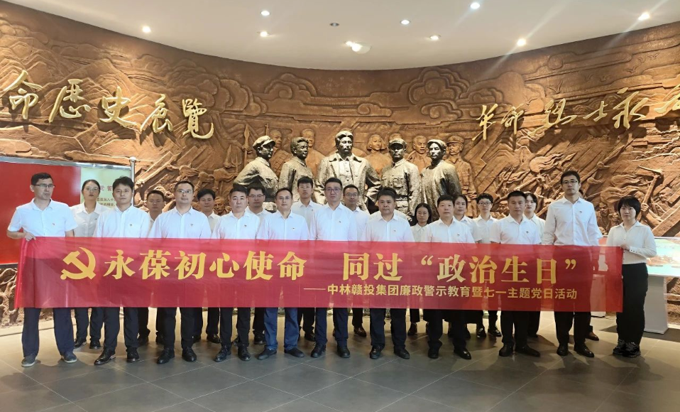 中林赣投集团党委在德兴市开展廉政警示教育暨七一主题党日活动。在德兴市饶守坤公园,公司全体党员、职工参观了革命烈士纪念馆,认真聆听宣讲员讲解闽皖赣革命根据地的革命岁月和红色故事,近距离感受革命先烈们坚定信念、对党忠诚、严守纪律的光荣传统。在德兴国储林项目储备组驻地,党委负责人以“永葆初心使命、同过‘政治生日’”为主题,为全体党员上了一堂纪律党课。他回顾了《中国共产党纪律处分条例》修订的过程和背景,详细解读了《条例》重点内容,并结合当前重点工作和自身工作经历分享了学习体会。