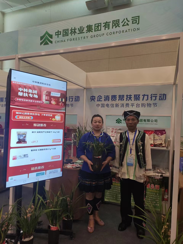 作为33家受邀现场参展的央企代表之一,在此次活动中,中林集团携定点帮扶县通道县的4家重点合作企业代表共同展示帮扶成果,通过线上线下相结合的方式,带来了近30种湖南侗乡的特色消费帮扶产品。特别是此次通道县红艳兰花园艺公司带来的建兰、墨兰等兰花品种,作为全场唯一的园艺花卉类产品,别具特色,引来不少观众驻足参观,询价购买。