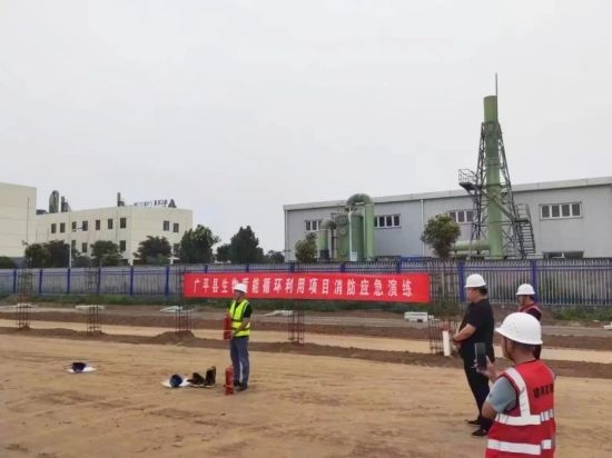 永林广平生物质能循环利用项目组紧抓安全生产主线,围绕“广泛宣传、仔细排查、严抓整改、定期训练”四大支线落实安全生产工作。项目组定期督促总包方组织施工人员开展安全教育活动,并在施工现场广泛张贴宣传标语,营造良好氛围,切实增强施工人员安全意识;以周为单位,与总包、监理方进行一次安全检查行动,严抓隐患整改时效、严罚整改不及时不到位情况,力保隐患排查整改质量;由项目组牵头,定期邀请当地消防部门进行消防安全专业指导,增强施工各方消防安全意识,提升员工应对突发险情的应急处理能力。在有力的安全生产工作保障下,永林广平生物质能循环利用项目施工建设已在有条不紊进行中。