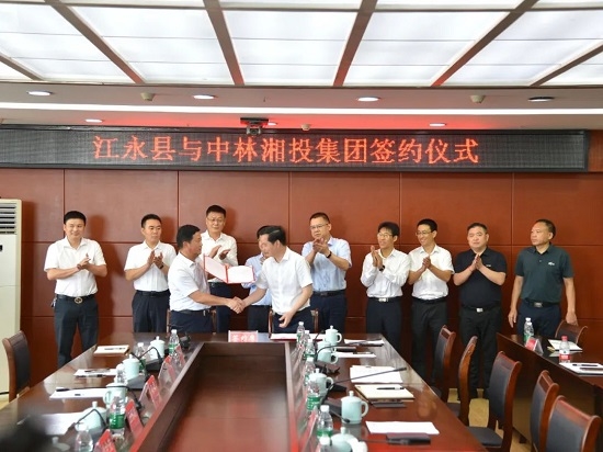 自深入学习贯彻习近平新时代中国特色社会主义思想主题教育开展以来,中林集团所属中林(湖南)林业投资开发集团有限公司(以下简称“中林湘投”)党委按照集团党委总体部署,坚持把“促发展”作为第一要务,加快推动在湘国家储备林和油茶产业项目建设。近日,分别与永州江永县、株洲攸县及常德汉寿县签订共计100万亩国储林及油茶基地项目建设合作协议,进一步扩大在湘合作版图。