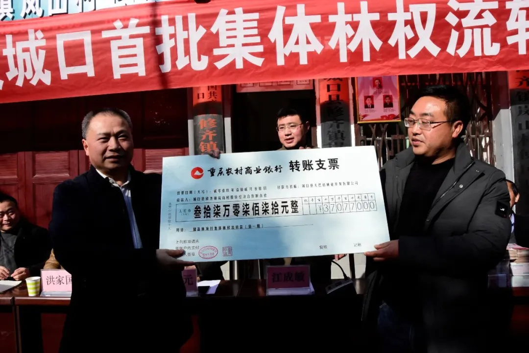 图为城口县首批集体林权流转款(第一期)兑现现场