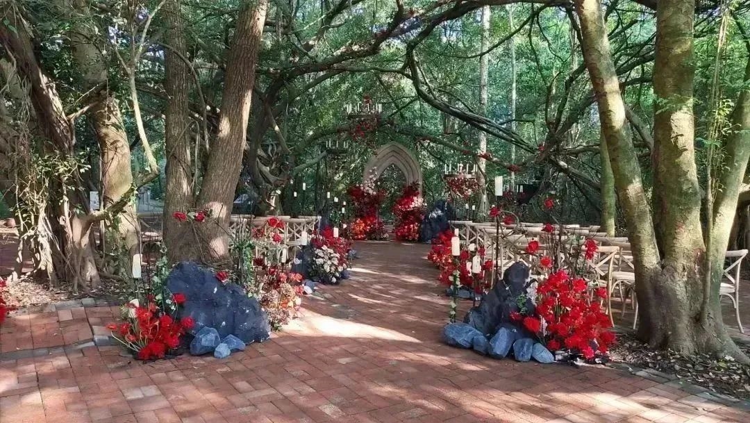 拓展“情人树”爱情故事,景区推出“爱缘凤江”森系婚礼品牌,吸引众多新人到公园喜结连理,景区爱情文化持续向外延伸拓展。