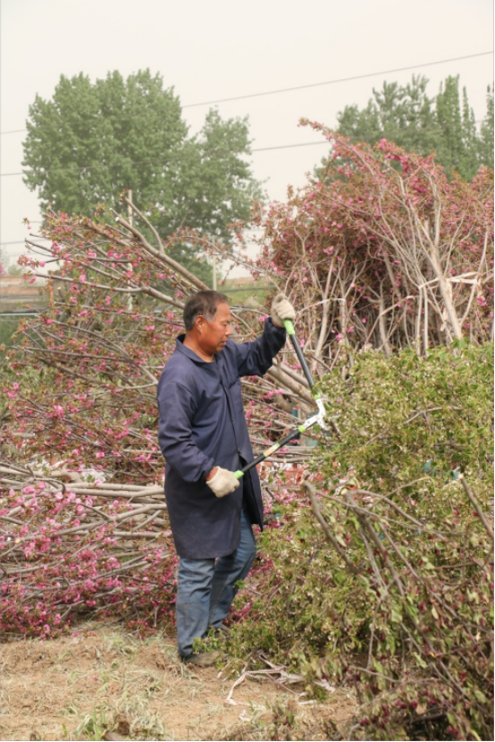 生态修复 严控品质 林场集团所属中林生态环境科技有限公司一线员工在修剪即将栽植的乔木,对乔木的干枯枝、病虫枝和过密枝条进行精细化、科学化修剪,疏枝疏叶,改善树木通风透光条件,减少移栽后树木的水分蒸发量,提高其抗风能力和美观度。(摄影: 张旭)