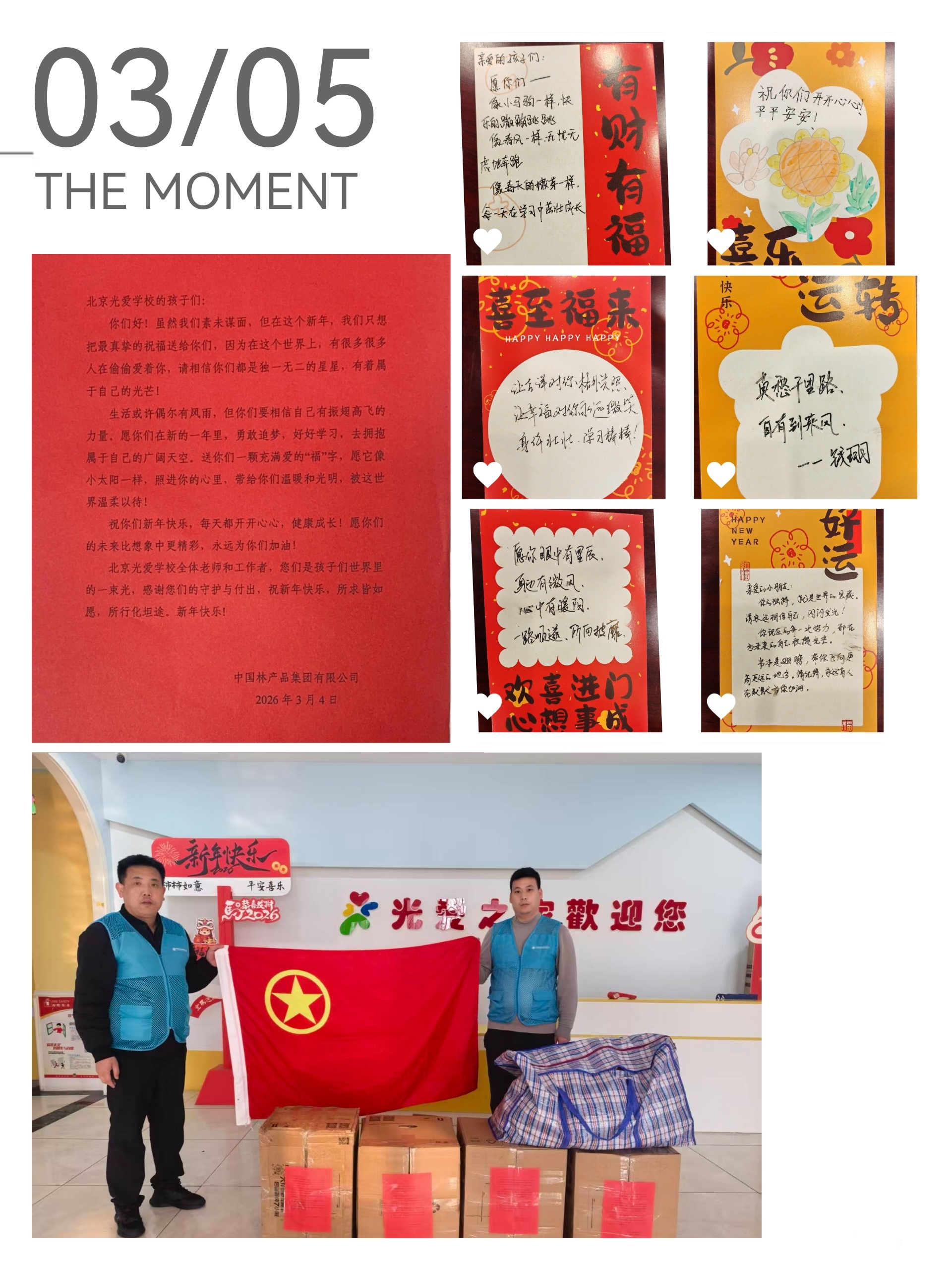 公司团委还发起了“暖春汇聚、点滴爱心”定向捐赠活动,向北京光爱学校的困境儿童送去温暖与关怀。公司全体员工积极响应、踊跃参与,纷纷整理捐赠适龄儿童使用的物资,共募集书本读物160余册、益智玩具66个、衣物鞋帽110件(双)。3月5日下午,公司将暖心物资及暖心寄语送到北京光爱学校,让每一份爱心精准抵达孩子手中。一份捐赠,一份希望;一份关怀,一份力量。本次志愿捐赠活动既是积极投身志愿服务事业、践行公益理念的雷锋精神体现,也是践行社会责任,传递中林温度的央企担当展现。把爱心帮扶落到实处,用专业与善意为社会公益事业添砖加瓦,把温暖与关怀送到更多需要的地方,让爱心传递、志愿公益持续常态化、长效化。