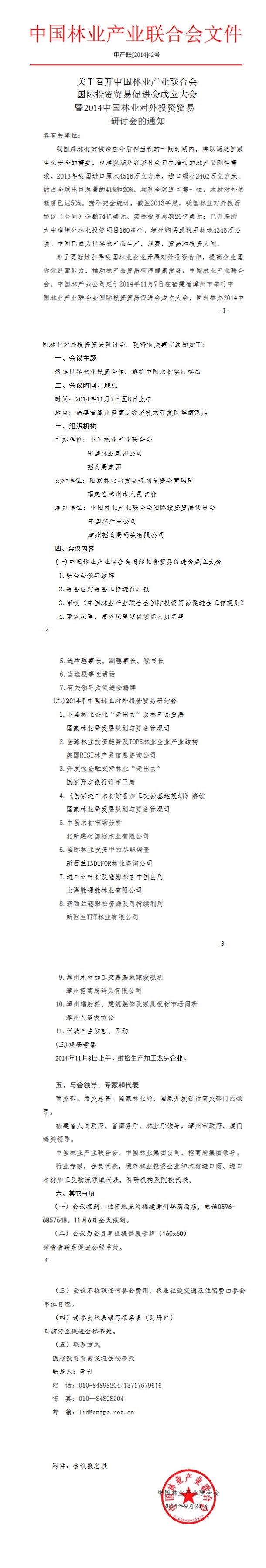 关于召开中国林业产业联合会国际投资贸易促进会成立大会暨2014中国林业对外投资贸易研讨会的通知
