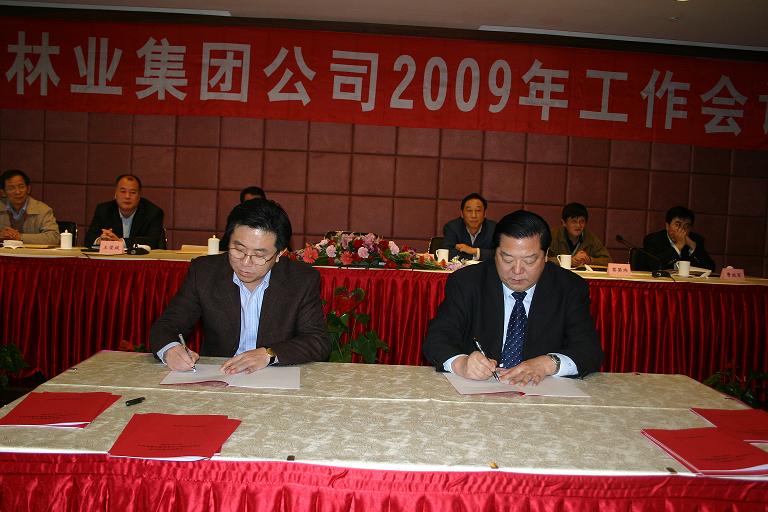 2009年2月20日至21日,中国林业集团公司在京召开2009年工作会议,集团公司总经理、党委书记张樟德同志做了题为《坚定信心,把握机遇,切实把集团公司做强做大》的主题工作报告,报告全面回顾总结了2008年集团公司改革发展情况,深入分析了当前形势,安排和部署了2009年工作任务。会上,集团公司张樟德同志与各子公司法人签订2009年目标责任书。