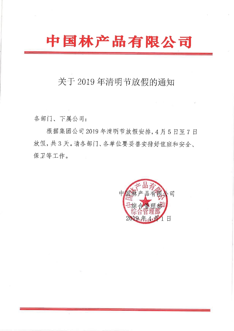 关于2019年清明节放假的通知