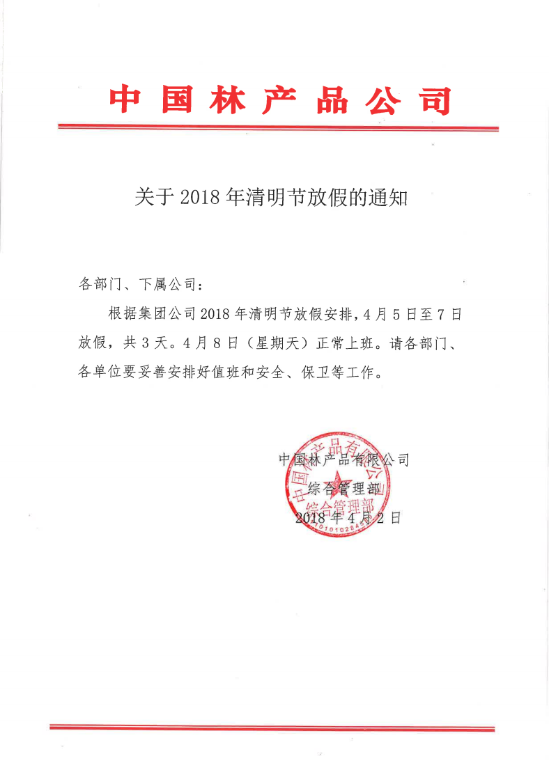 关于2018年清明节放假的通知
