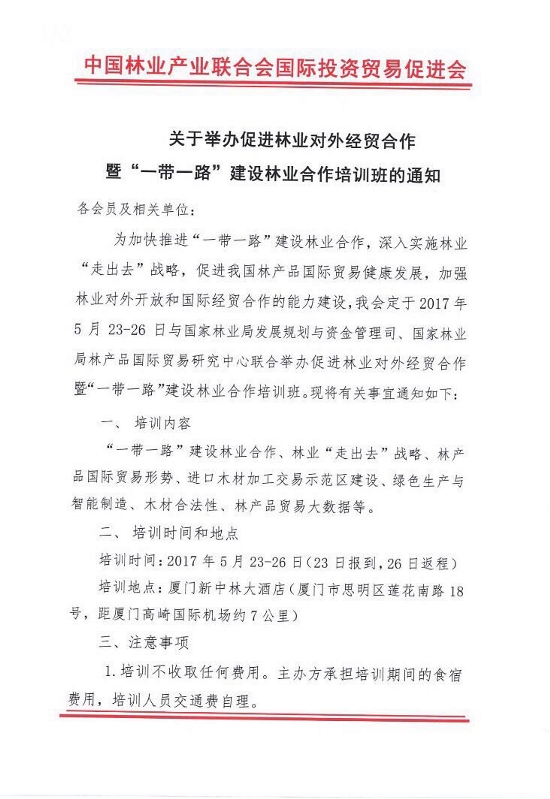 关于举办促进林业对外经贸合作暨“一带一路”建设林业合作培训班的通知