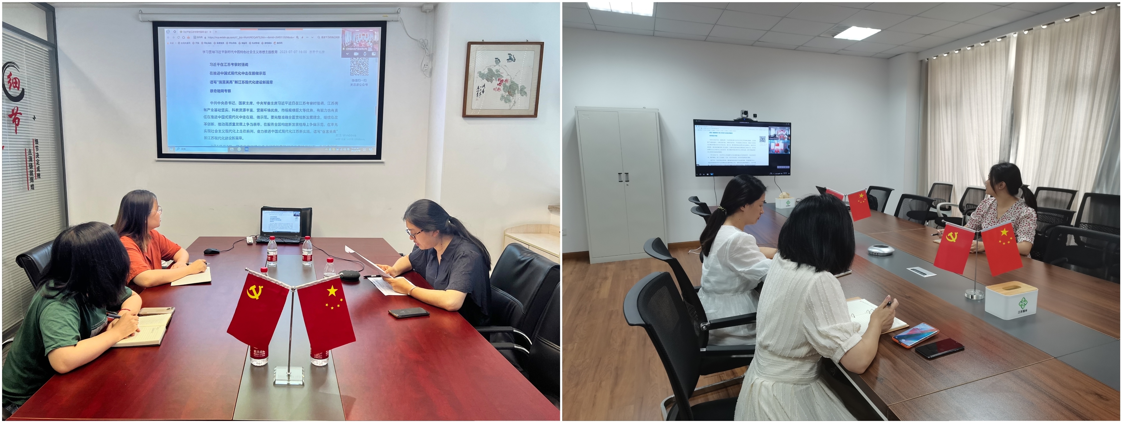 镇江中林林业有限公司党支部召开党员大会认真学习了习近平总书记在江苏考察时的重要讲话精神。 会议强调,习近平总书记亲临江苏考察指导工作,在新时代新征程上对江苏未来发展有着重大意义。镇江中林全体干部职工要始终坚持党的领导,认真贯彻落实习近平新时代中国特色社会主义思想,以守正之道,锐意进取、踔厉奋发,在建设新中林的征程上不断深入、战略上不断成熟、实践上不断丰富。 苏州国林公司联合党支部