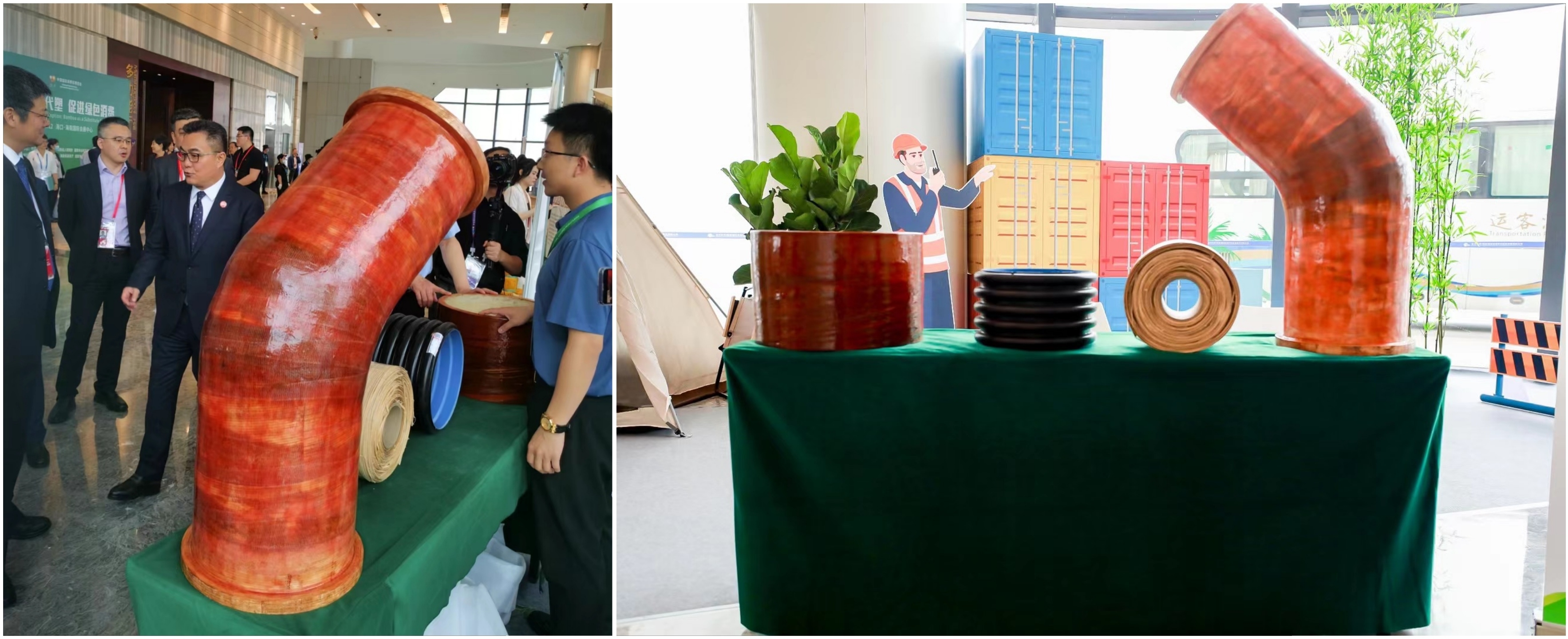 在第三届中国国际消费品博览会期间,中林鑫宙公司受邀参加由中华人民共和国商务部、湖南省人民政府、国家林业和草原局、国际竹藤组织联合主办的“推动以竹代塑 促进绿色消费”论坛,旗下竹缠绕产品惊艳亮相,受到广泛关注。