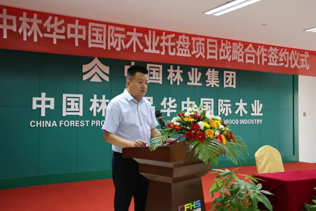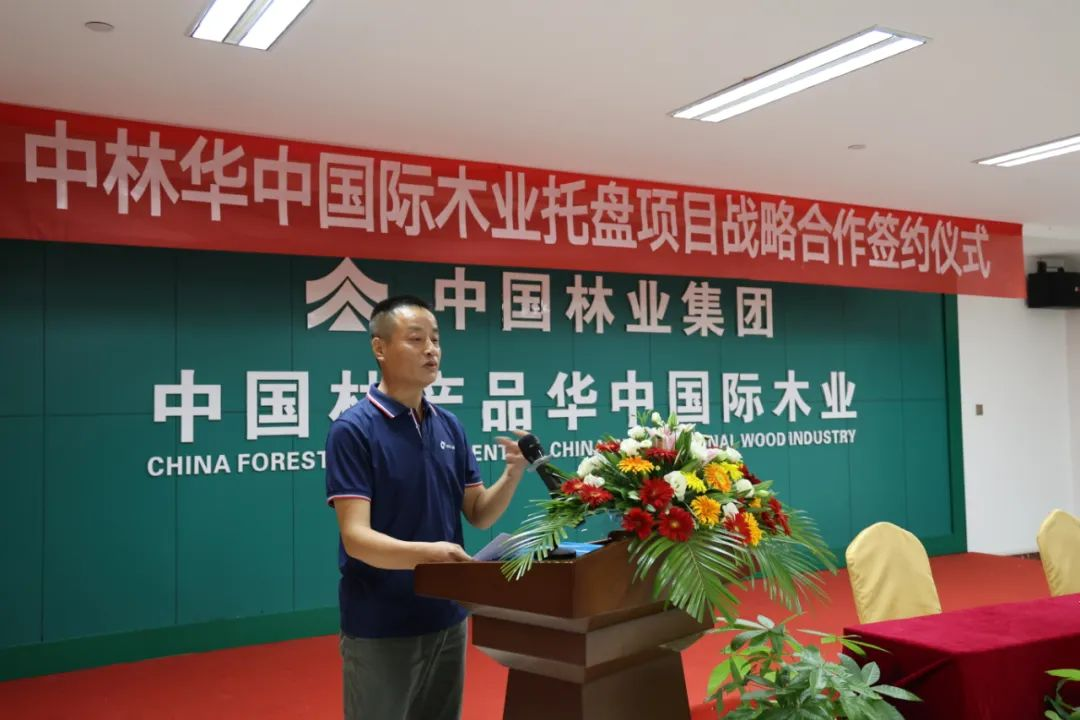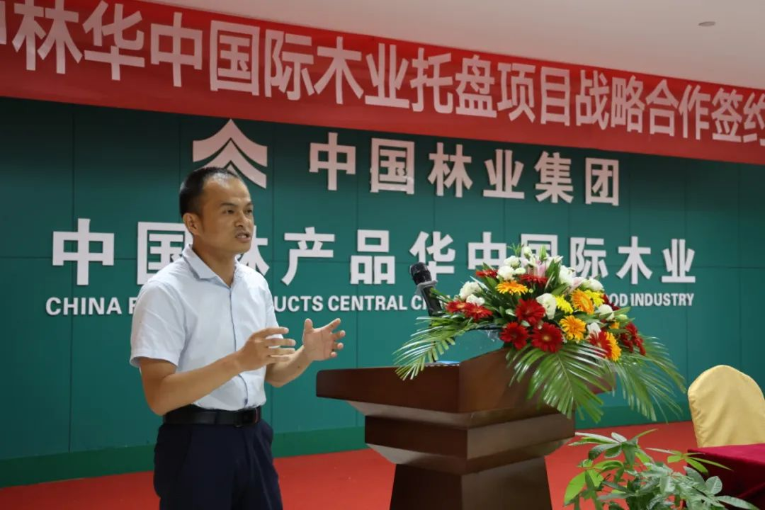 仪式中,华中木业董事、总经理江美文在致辞中表示,华中木业公司作为林产品公司控股子公司,近年来坚持践行习近平生态文明思想,走绿色发展之路。公司紧紧围绕中林集团“两个目标”“四个定位”的发展战略,依托现有园区产业集群和港口铁路物流优势,加快推进园区企业转型升级步伐,积极谋求探索新的发展之路。本次战略合作旨在充分发挥中林华中木业产业、品牌、资金、物流等平台和资源优势;武汉爱帮公司在托盘租赁市场的人才、团队、网络、技术、运营和渠道优势;园区木材加工企业的规模批量化生产和供应链成本优势,共同推动木质托盘、木质包装循环共用平台建设和运营。希望各方以此次战略合作为契机,强强携手,在木制托盘产业技术创新、生态产品价值实现等方面开展更多的合作,共同打造具有经济价值、生态价值、社会价值的托盘产业示范样板,实现与合作企业共建、共赢、共成长。