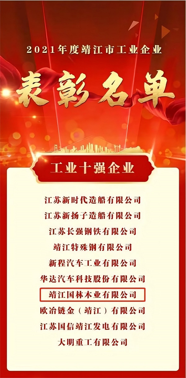 2021年,靖江国林坚持品牌树企、科技强企,坚持一手抓风险防控,提高发展质量;一手抓跨越发展,奋力争先进位,各项工作有序开展,发展短板不断补齐,生产经营稳健有序,整体实力再上新台阶。2022年,靖江国林将立足“科技兴企智创新未来,全力重构核心竞争力”的发展思路,进行新技术、新设计、新方法和新产品研发及销售,积极开拓新兴市场,积极布局科技兴业战略,重点打造“国林装配式建筑”及“国林怡景防腐木”央企新锐品牌核心竞争力,做行业高质量发展领跑者,为靖江经济发展再立新功。 相关信息