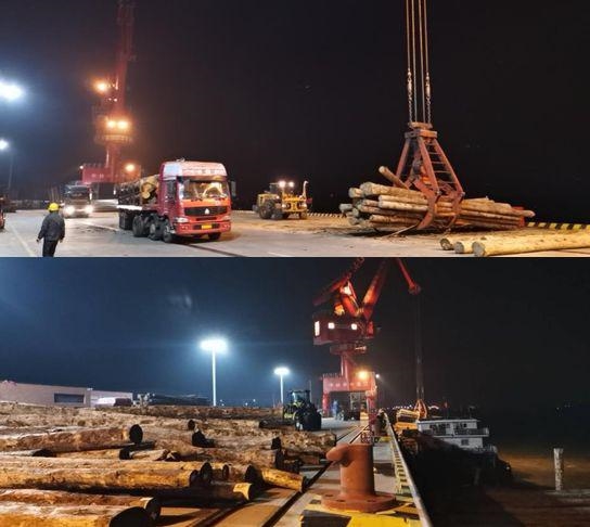 由党员组成的突击小队坚守岗位,主动担责,24小时不间断作业,确保了特殊时期各项工作任务圆满完成。由于疫情严重,港口实施最严格的“无接触装卸”,为了减少接触,所有船员不允许上码头,所有码头作业人员不准上船,通过电话和对讲机沟通,最大限度地减少人员接触。 公司积极协调船代公司,组织货源,安排运输,确保原木早日到港。截止目前,已完成6艘共3.6万立方米原木货轮的卸载作业,为企业复工复产提供了有力的原材料保障。