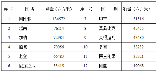 2012年进口红木、樟木、楠木锯材统计表(表二)