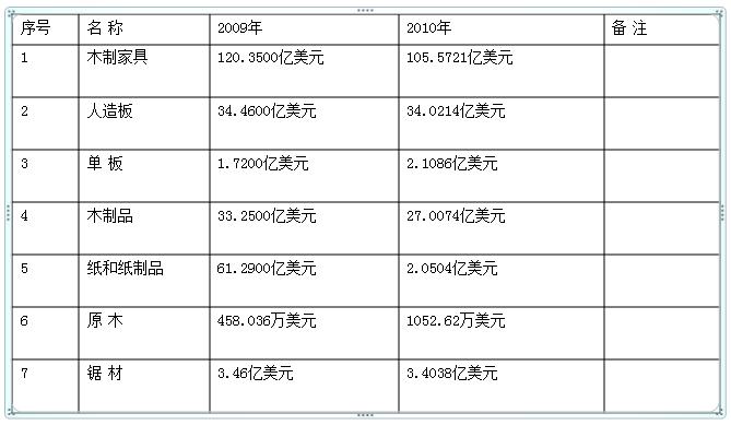 表三 2010我国主要木制品出口金额数量表