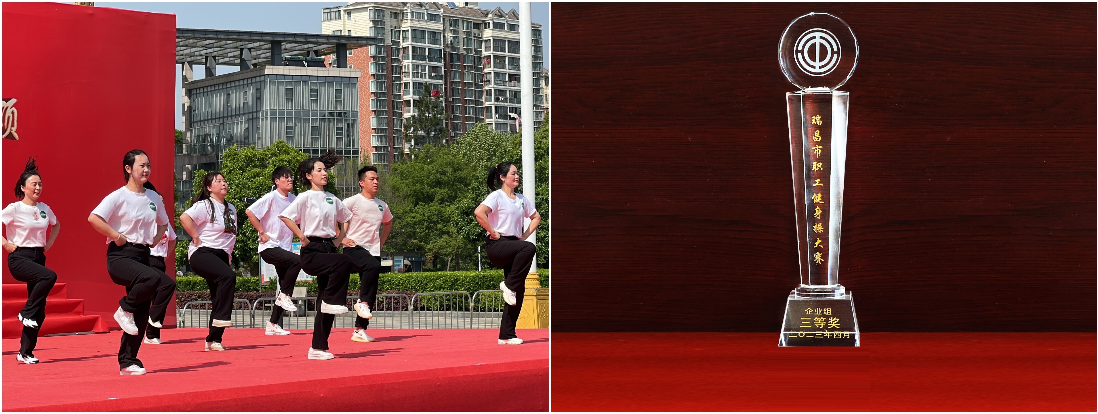 参加主题教育的团员青年纷纷表示,生逢盛世,身肩重任,将时刻牢记习近平总书记嘱托,做有理想、敢担当、能吃苦、肯奋斗的新时代好青年,在公司高质量发展中持续增长才干、贡献青春、智慧和力量。 舞动青春 展现青年风采活力 “五四”青年节之际,为展示公司职工朝气蓬勃、积极向上的精神风貌,进一步提升职工凝聚力、战斗力,公司选派12名青年职工,参加了由瑞昌市总工会组织举办的“中国梦 劳动美 瑞昌颂”职工健身操大赛,比赛中,中瑞昌华中公司代表队以热情洋溢、动感十足的舞姿,在参赛的52支队伍中表现出色,荣获三等奖的好成绩。