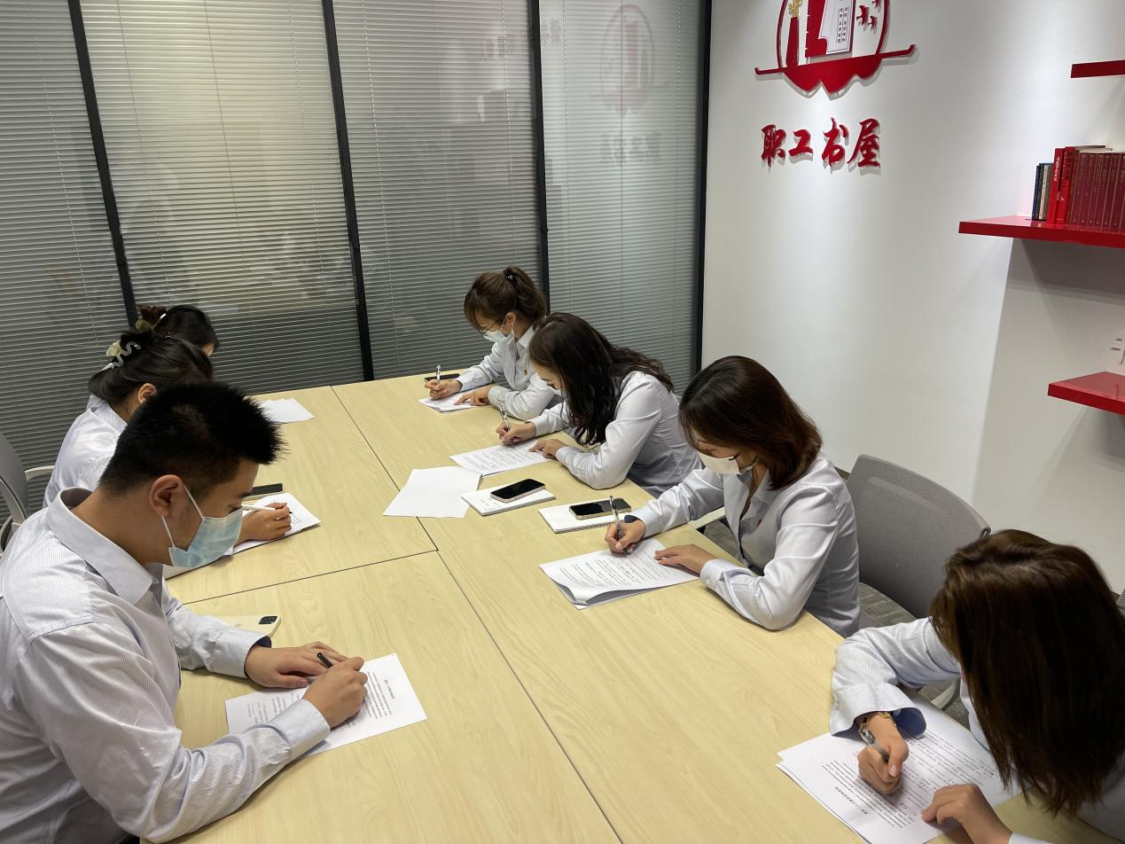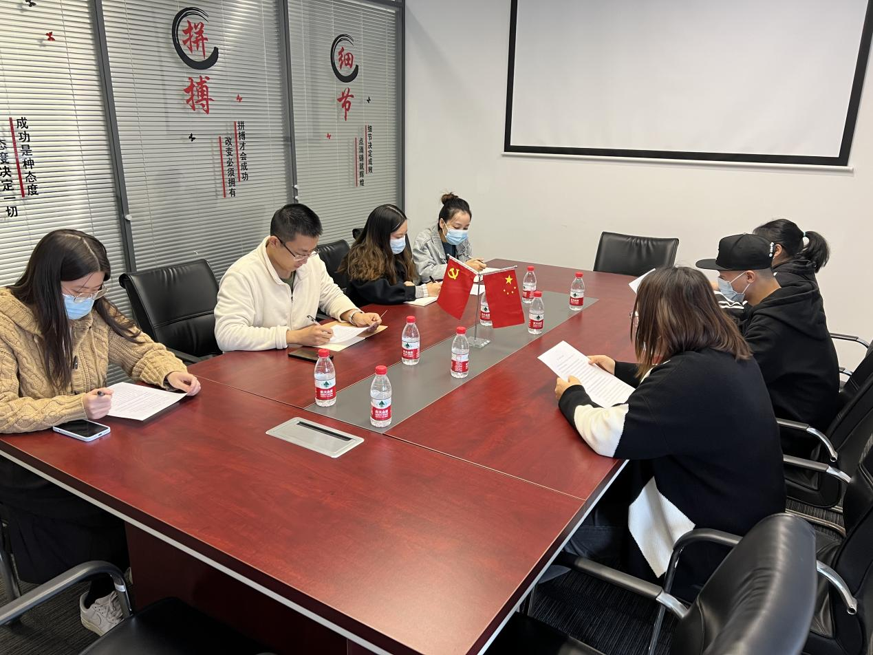作为团的基层组织,胜握胜团支部全力动员公司团员青年展开学习,高举中国特色社会主义伟大旗帜,深刻领悟“两个确立”的决定性意义,增强“四个意识”、坚定“四个自信”、做到“两个维护”,自信自强、守正创新,踔厉奋发、勇毅前行,把党的二十大的部署和要求落实到实际工作的各领域各方面,为全面建设社会主义现代化国家、全面推进中华民族伟大复兴努力奋斗。 △苏州国林华东商贸有限公司团支部 按照林产品公司团委关于组织学习贯彻党的二十大报告精神的要求,苏州国林团支部坚决抓好贯彻落实,于11月16日组织公司团员青年开展学习。 活动通过集体学习、诵读报告的形式展开,带动团员青年读报告、悟思想、谈体会,认真学习深刻领会二十大报告的精神实质和习近平总书记的殷切嘱托,不断持续推进团组织建设等重点工作。