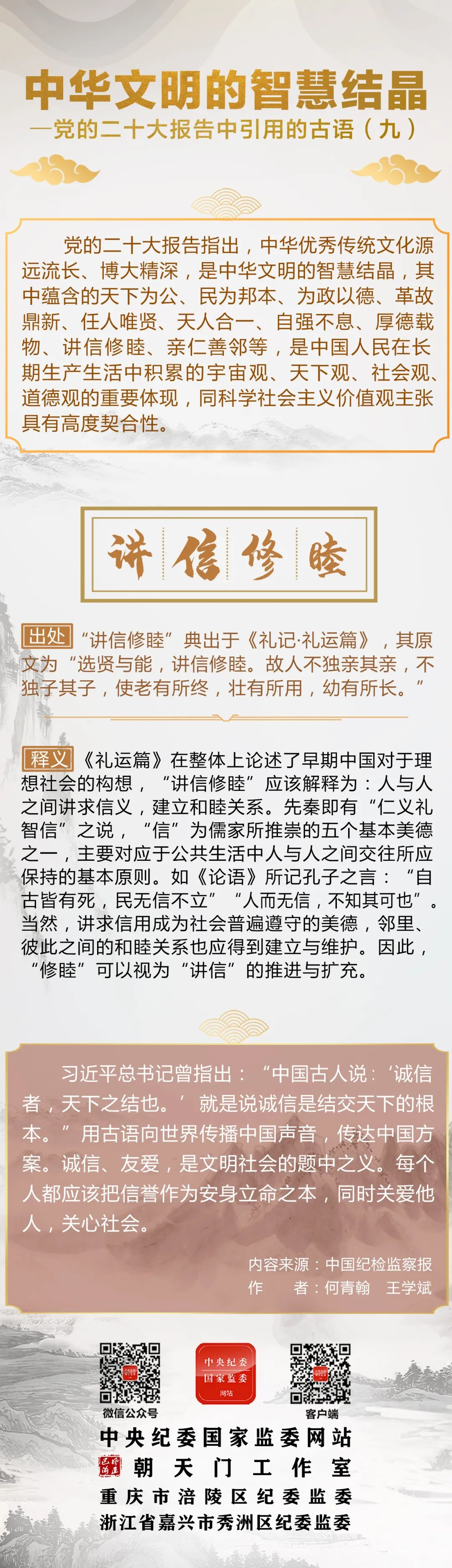 二十大报告中引用的古语:讲信修睦