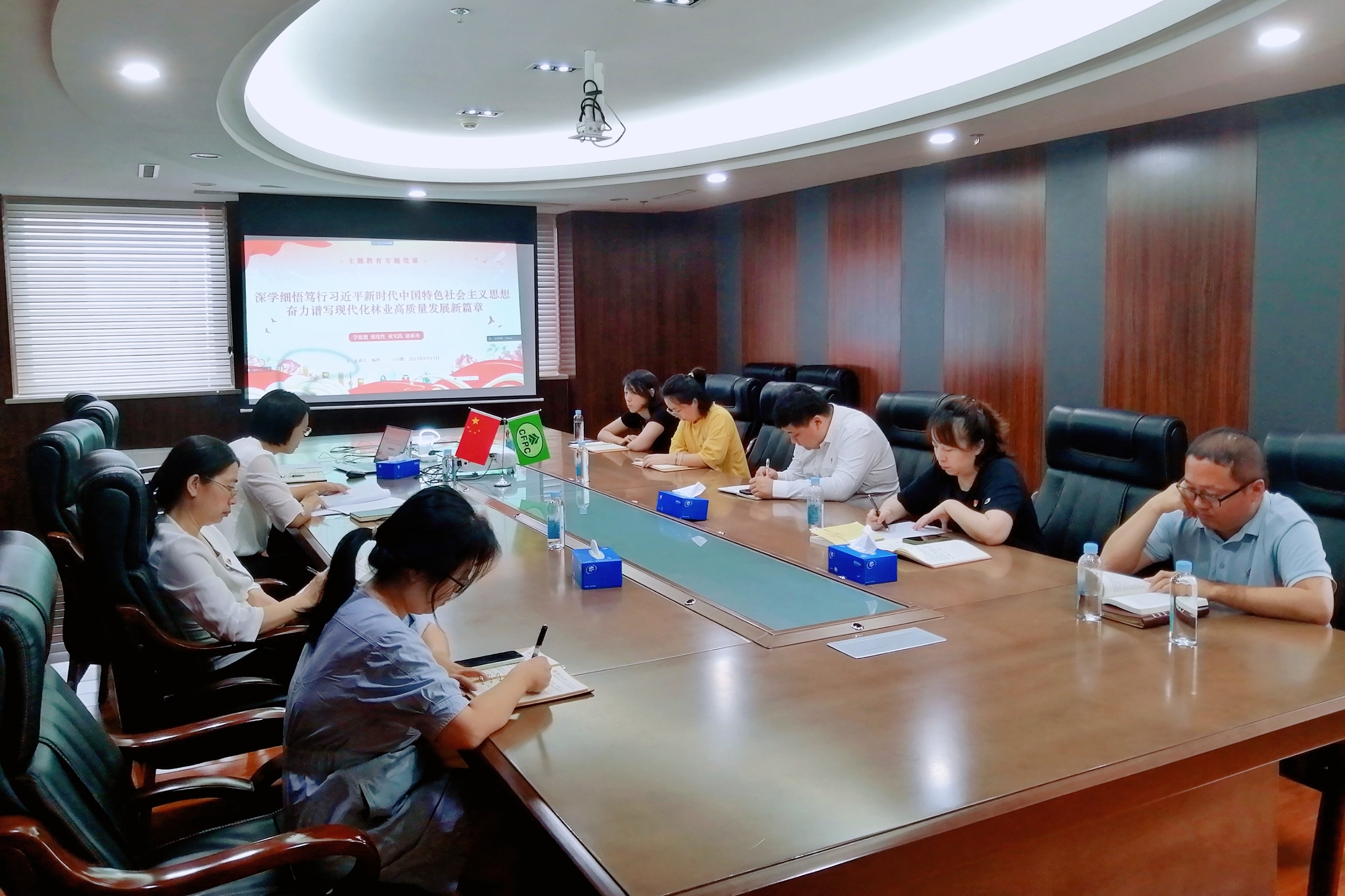 韩玉峰深刻阐述了学习贯彻习近平新时代中国特色社会主义思想主题教育工作会议上的目标要求和工作任务,要求全体党员要充分认识开展主题教育的重大意义,牢牢把握“学思想、强党性、重实践、建新功”总要求,切实提高政治站位,把思想及行动统一到党中央的决策部署上来,开拓进取、实干苦干,为助力中林集团成为国内最大的碳汇经营实体和生态产品价值实现重要运营平台贡献力量。 第三党支部 林产品公司第三党支部书记杨玲以“深学细悟笃行习近平新时代中国特色社会主义思想,奋力谱写现代化林业高质量发展新篇章”为主题,为第三党支部全体党员讲授专题党课。